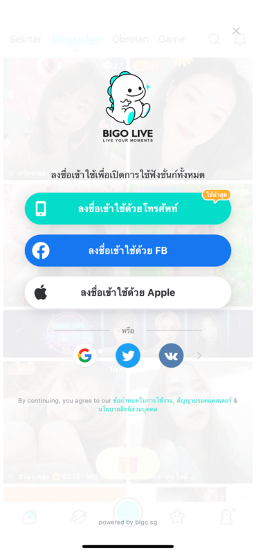 การเข้าสู่ระบบ BIGO LIVE บนมือถือ